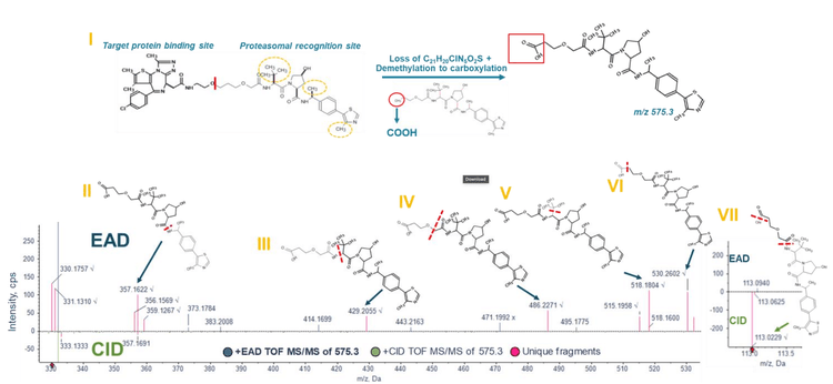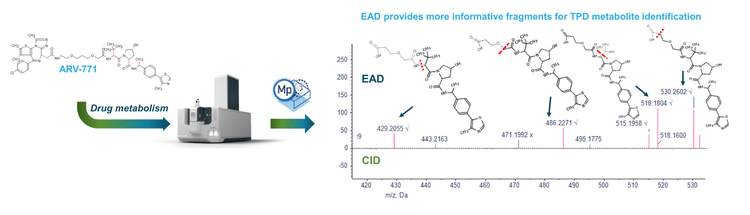 - Enhanced structure assignment: EAD provides information-rich MS/MS spectra that enable the identification of possible TPD metabolites when compared to CID