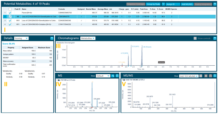 - Molecule Profiler software enables users to identify unique fragments from EAD and CID spectra in a single result file to achieve more accurate structure assignment of metabolites and to determine the possible location of the modifications