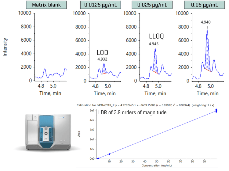 - Effortlessly meet critical quantitative performance criteria: Achieve accurate quantitative performance with %CV <11 at all concentration levels across a linear dynamic range (LDR) of 3.9 orders of magnitude