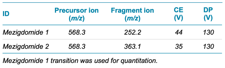 Key features of the quantitation of mezigdomide using the SCIEX Triple Quad 6500+ system