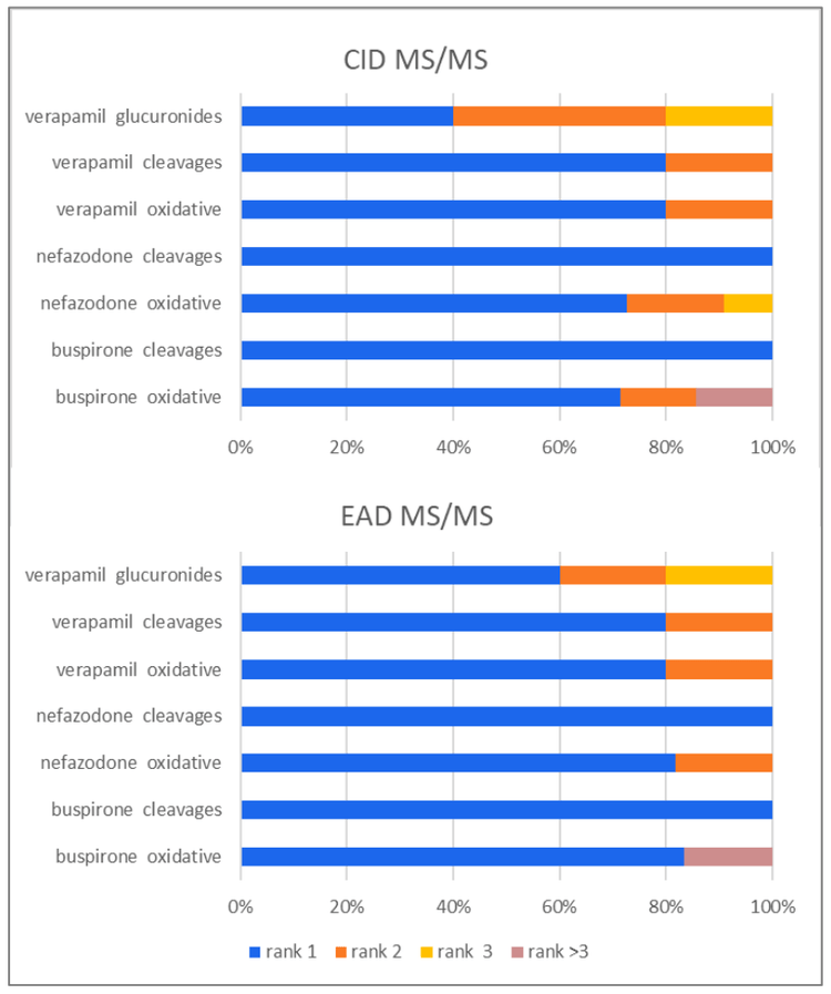 - Enhanced structure assignment: EAD preserves fragile modifications to easily localize phase II conjugates. EAD also provides information-rich MS/MS spectra that enable more confident identification of phase I metabolites than CID.
