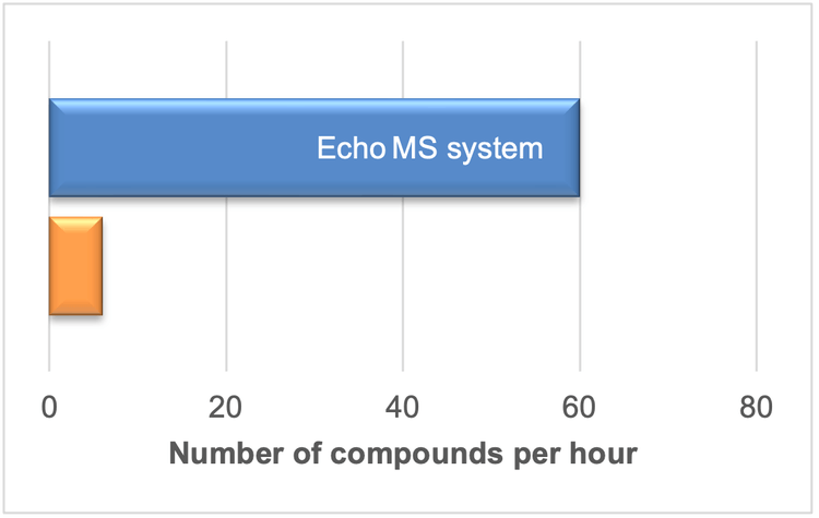 Metabolic stability assay screening on the Echo MS system yielded up to 10x greater throughput compared to LC-MS/MS (Figure 1)