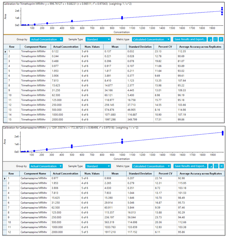 Calibration curves from the analysis of 2 example small molecules were displayed (Figure 3). Overall, an LDR of up to 4.2 orders of magnitude was achieved for small molecule analysis, demonstrating that measurements across a wide concentration range can be easily performed on the Echo® MS+ system with ZenoTOF 8600 system.3