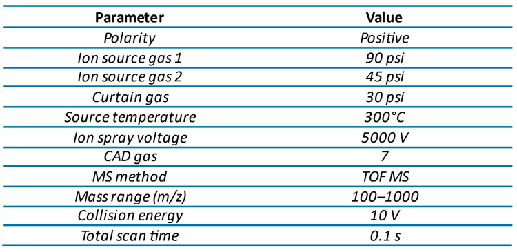 Before analysis on the Echo® MS+ system, 50 μL of the sample was transferred to a well of an Echo® MS qualified 384-well polypropylene (PP) microplate (Beckman Coulter® Life Sciences, P/N: C74290). The plate was centrifuged at 1,530 g for 2 minutes with a long arm centrifuge in portrait mode.