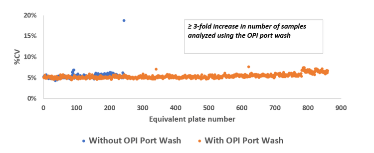 Here, we describe a proof-of-concept (PoC) study that demonstrates the value of integrating the OPI port wash function between batches. A comparative analysis was conducted between 2 scenarios: a baseline study without the OPI port wash and a study in which the OPI port wash was conducted after every 384 ejections.