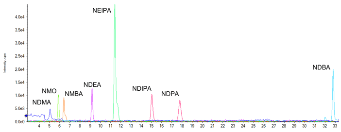 Nitrosamine analysis has recently become one of the largest areas of interest in the pharmaceutical industry after their production in numerous active pharmaceutical ingredients (APIs) and drug products was found to be possible. Because nitrosamines are believed to be genotoxic, their strict regulation is necessary to ensure human health is not adversely affected.