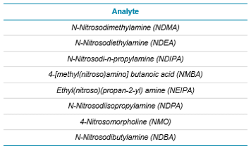 The interest in nitrosamines began in 2018, when it was realized that nitrosamine formation might be occurring in various sartan APIs. The concern subsequently moved onto ranitidine and metformin, with several other pharmaceuticals also being called into question. This then provides an analytical challenge because of the speed at which the issue has grown since the first introduction in 2018, and the various products that have been implicated. Therefore, robust and sensitive analytical methods are necessary due to the relatively low limits that have now been provided as guidance by both the FDA and EMA1-2. These limits currently stand at either 26.5 ng/day or 96 ng/day depending on the nitrosamine compound of interest. This equates to a general limit of 30 ng/g for drug products which have a maximum daily dose (MDD) below 880 mg/day, with adjustment necessary if this MDD is exceeded.1