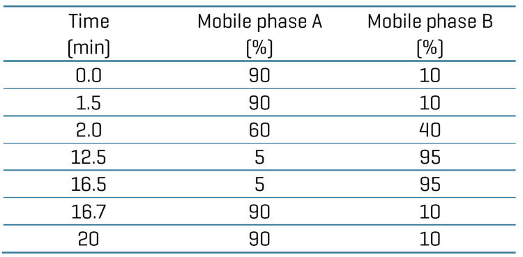 The chromatographic gradient conditions are summarized in Table 1.