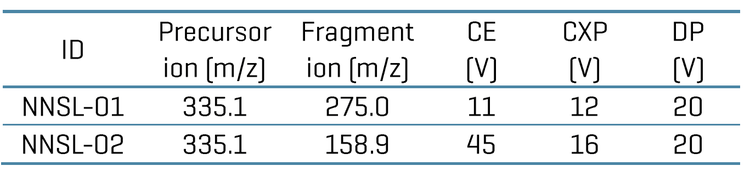 - Sub- ng/mL level of quantitation: Achieve 0.125 ng/mL LOQ for the quantitation of NNSL.