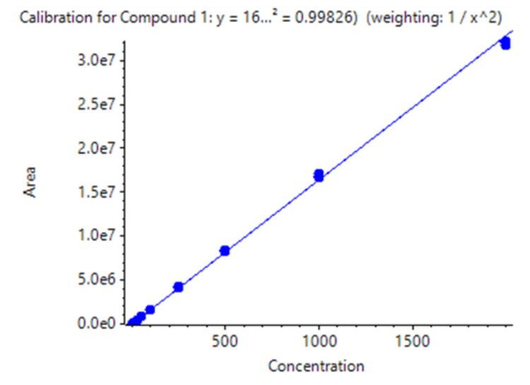 - Linearity was achieved at concentrations ranging from 0.125 ng/mL to 2000 ng/mL with an r2 >0.998, resulting in an LDR of 4.2 orders of magnitude .