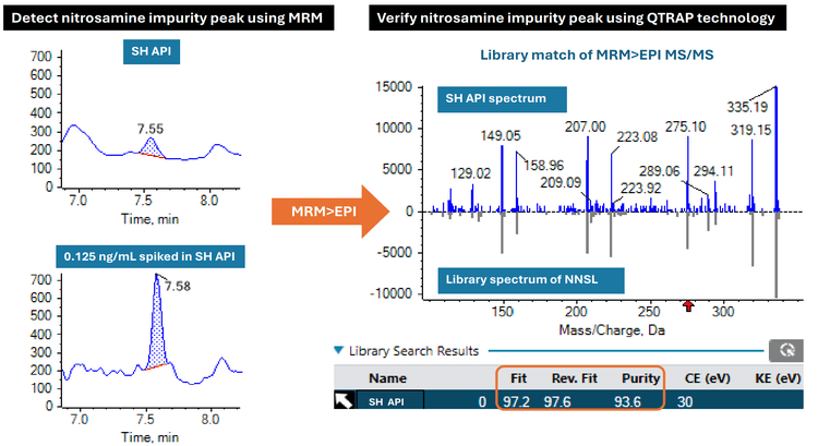 - NNSL impurity in SH API was identified and verified by comparing the impurity MS/MS spectra with the NNSL standard MS/MS spectra , easily performed using library matching on SCIEX OS software.