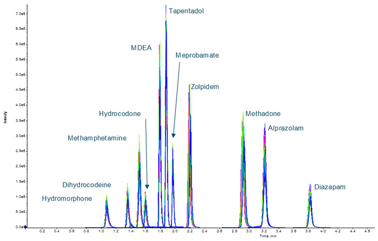 - Accurate and precise quantification results with injection linear coefficient of determination performance (r2) > 0.999 and precision <1% coefficient of variation for injection volumes from 0.5 to 50 µL for most compounds studied; 0.5 to 25 µL for all compounds