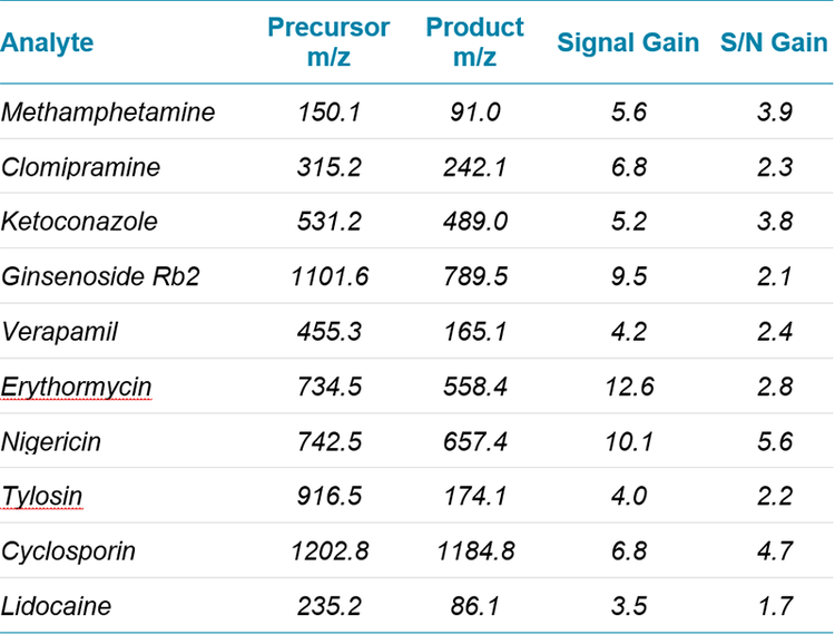 - The hotter and more stable desolvation area established by the IonDrive Turbo V source allows for superior performance at high LC flow rates.