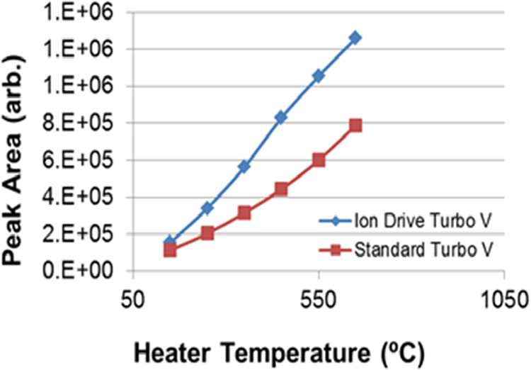 - Greater ion desorption rates from ESI droplets can be achieved on the new IonDrive Turbo V source using high capacity heaters with a wider sweet spot and enhanced sensitivity