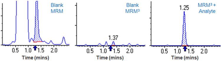 - MRM3 is an effective strategy for quantitation of analytes when high background or interferences make standard MRM quantitation difficult (Figure 5)