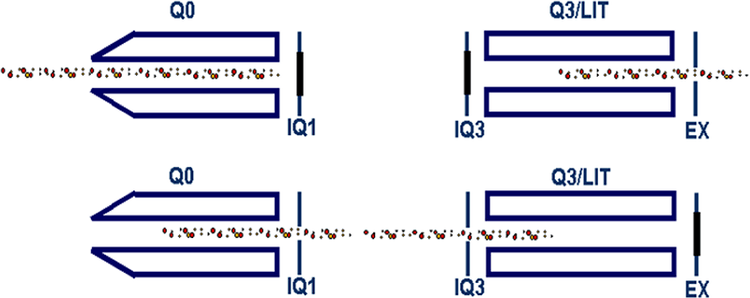 Q0 trapping can be employed to increase the sensitivity of any LIT or hybrid scan. When Q0 trapping is turned on, ions produced at the source are accumulated in Q0 during the scanning of the LIT. When the ion trap is ready to be filled again, the ions from Q0 are released (Figure 8). Often, ~5-10x increase in signal intensity is observed in MS/MS mode when Q0 trapping is activated.