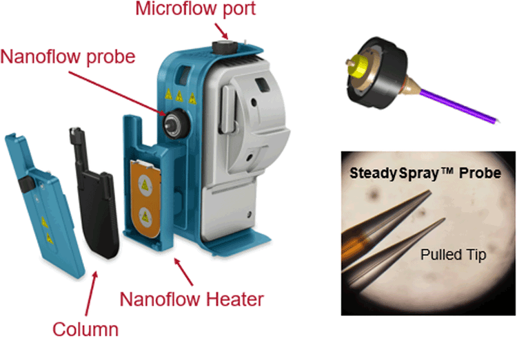 Chromatography: The nanoLC testing was performed using the NanoLC 425 system with either the nano flow module or the low micro flow module in trap-elute mode. The microflow testing was performed using the M5 MicroLC system.
