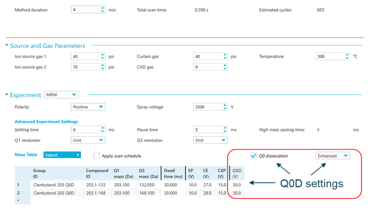 - The Q0 dissociation-enhanced method for targeted MRM3 analysis is easy to set up in SCIEX OS software, with the addition of the Q0 dissociation parameter to standard MRM analysis