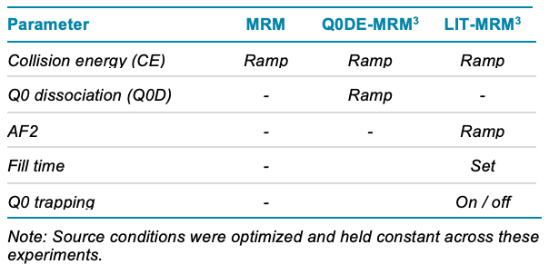 - Compared to the historically utilized LIT-MRM3 workflow that leverages the QTRAP system, the Q0DE-MRM3 requires much less development and optimization and can be higher multiplexed